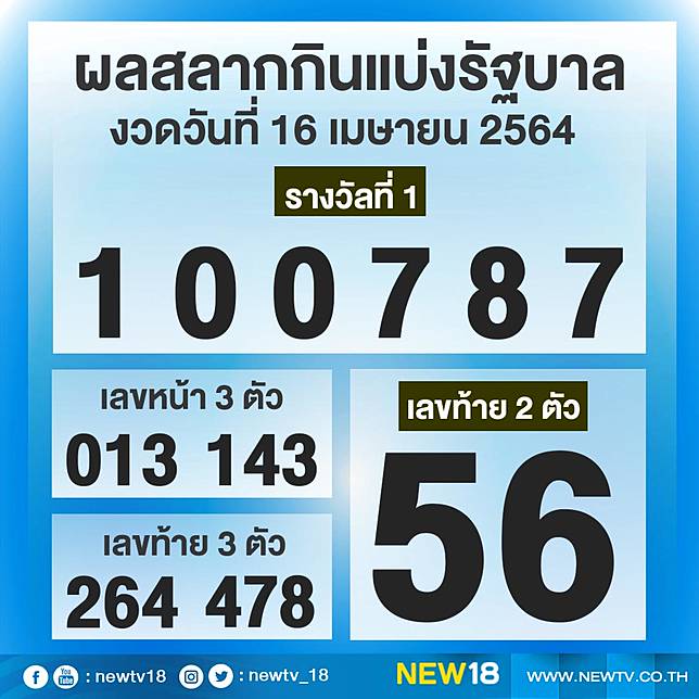 ตรวจหวย ผลสลากกินแบ่งรัฐบาล งวดประจำวันที่ 16 เมษายน 2564.